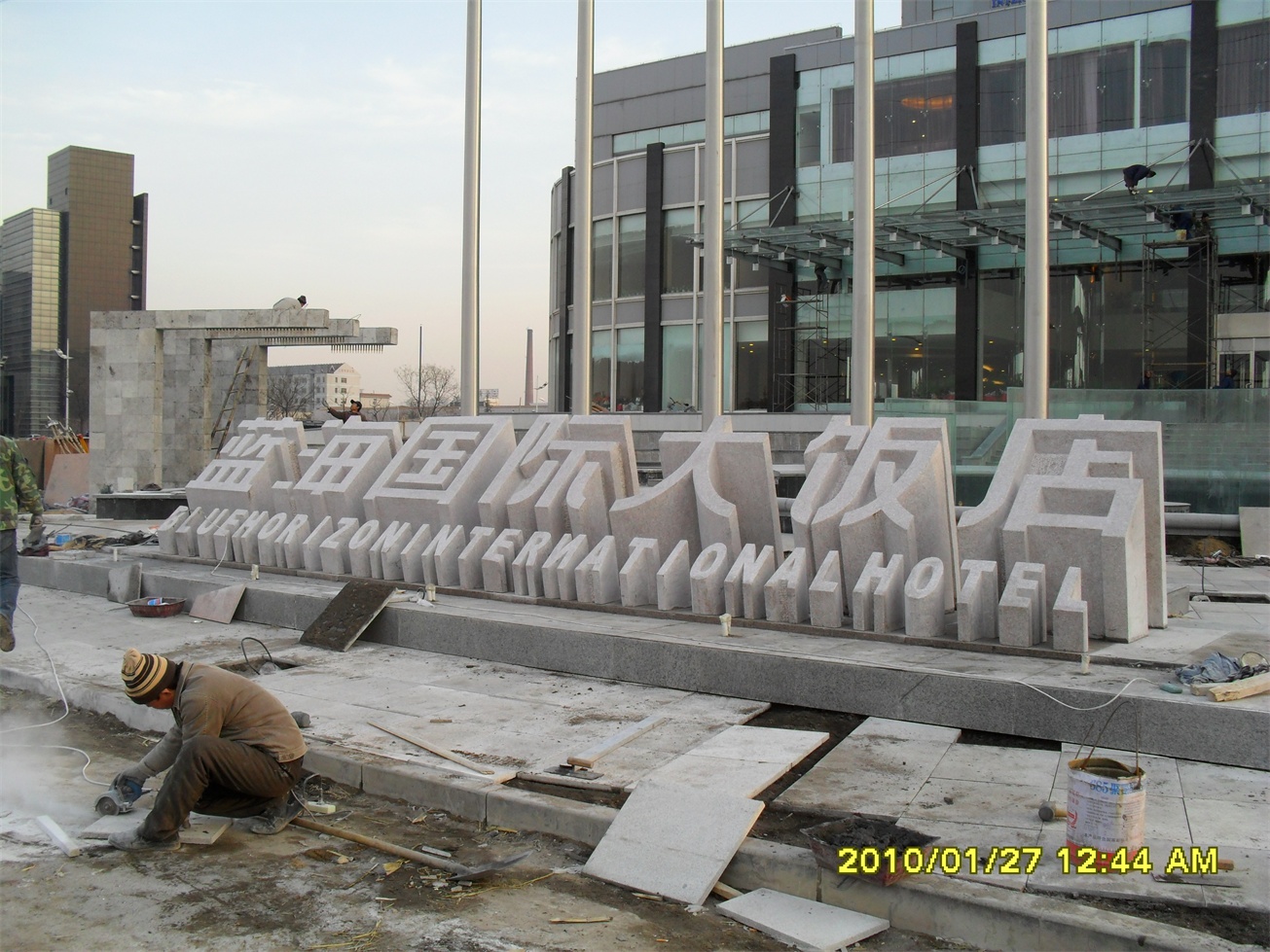 石材雕塑展示。石雕,指用各種可雕、可刻的石頭,創(chuàng)造出具有一定空間的可視、可觸的藝術(shù)形象,借以反映社會(huì)生活、表達(dá)藝術(shù)家的審美感受、審美情感、審美理想的藝術(shù)。常用的石材有花崗石、大理石、青石、砂石等。石材質(zhì)量堅(jiān)硬耐風(fēng)化,是大型紀(jì)念性雕塑的主要材料。